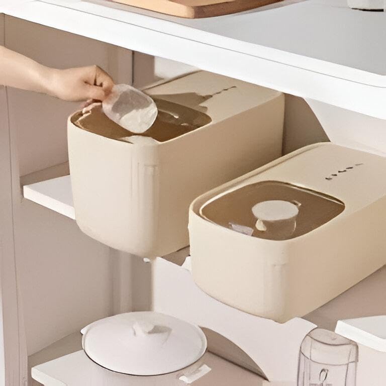 - متوفرة بمقاسين عمليين - سعة 5 كجم و10 كجم - توفر هذه الحاوية خيارات تخزين مرنة للمنازل من جميع الأحجام.