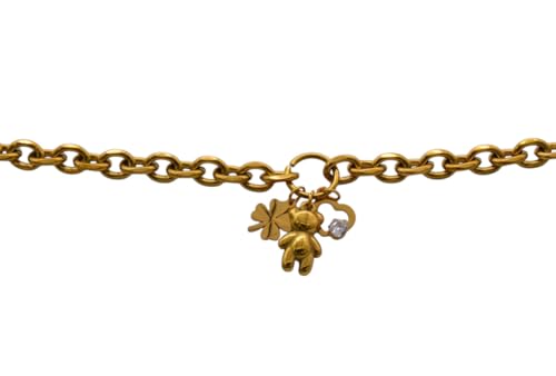 Generic - Bear Charm Stainless Steel Curb Chain Bracelet For Women - Gold