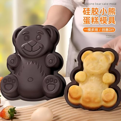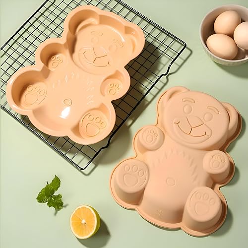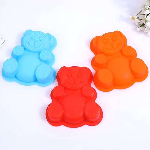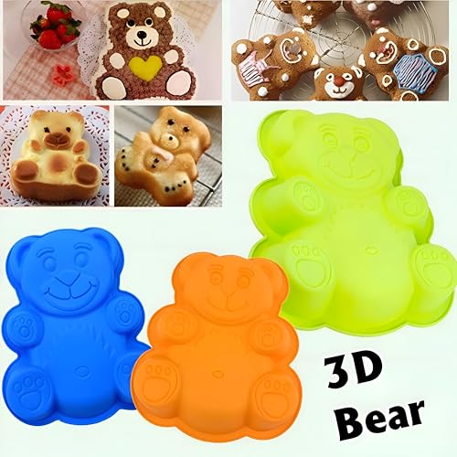 - Bear-shaped silicone mold set in a colorful three-piece collection, featuring a flexible, non-stick surface that makes releasing cakes and craft projects effortless.