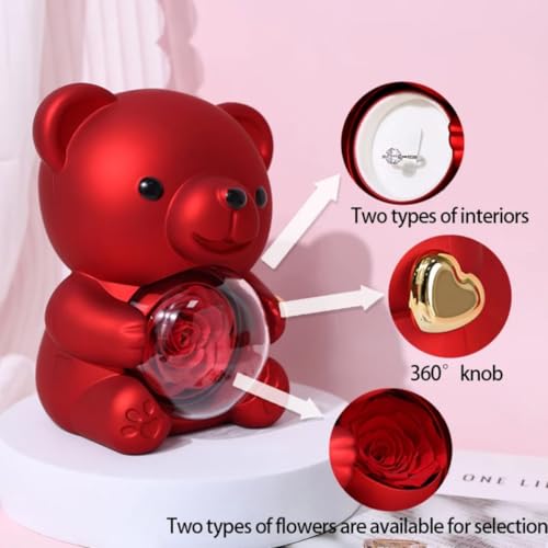Generic - Bear Rose Jewelry Box - Ring Holder - Chain Holder - Engagement Ring Box (Bear)