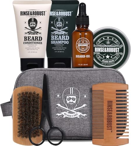 - مجموعة للعناية باللحية: مجموعة عناية باللحية 8 قطع مع شنطة سفر، تحتوي على كل ما يلزم للحفاظ على اللحية نظيفة ومهذبة، لذا فهي هدية مثالية لكل رجل. فرشاة ومشط اللحية ومقص للحية تجعل تشذيب وتشكيل لحيتك أسهل من أي وقت مضى، بالإضافة لشامبو وبلسم اللحية كلها في شنطة السفر هذه، رينس اند روست احترافية في العناية بالوجه للرجال وكل شيء مصمم لك.