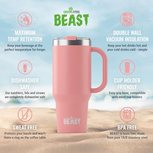 - BIGGER & BETTER – NEW HUGE 42oz and 50oz BEAST Tumbler with Handle has arrived! Offering unprecedented capacity. Now hold even more of your favorite beverage at the perfect temperature for longer!