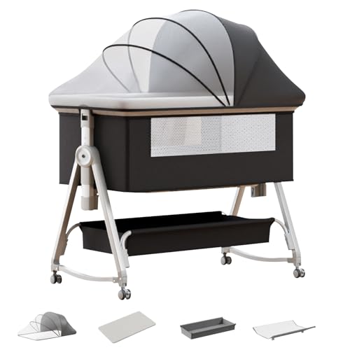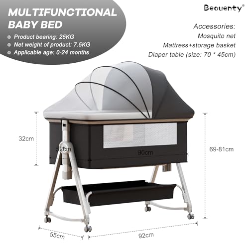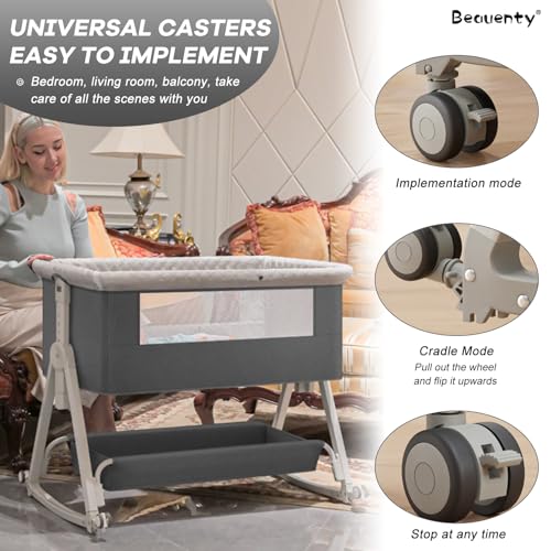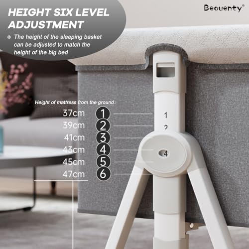 Beauenty - Beauenty Baby Bedside Crib, 6-Gear Height Adjustable Baby Bassinet bed With Large Storage Basket Baby Bed Soft Mattress 360°Swivel Wheels for Infants Newborn (Dark Gray)