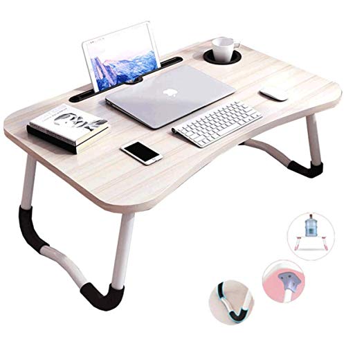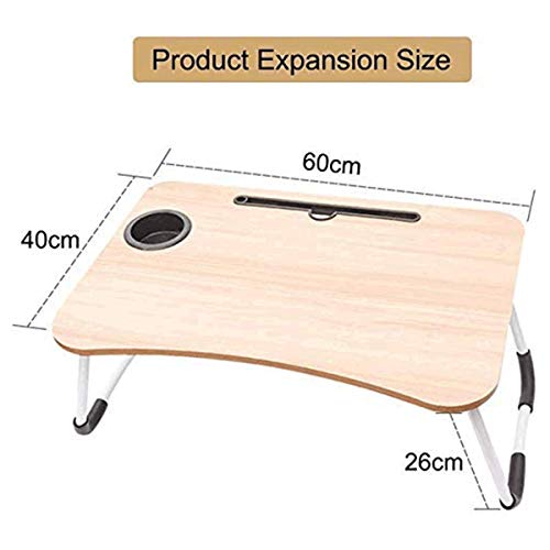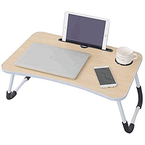 Beauenty - Beauenty Folding Bed Table Laptop Tray with iPad and Cup Holder Adjustable Lap Tray Notebook Stand Foldable Portable Standing Desk for Indoor Outdoor Camping Study Reading Eating (Beige)