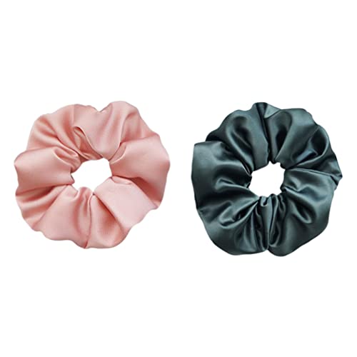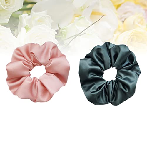 Beaupretty - Beaupretty 2pcs Silk Hair Rope Hair Ties Silk Satin Hair Scrunchies Strong Elastic Hair Bobbles for Ponytail Holders (Green and Pink)