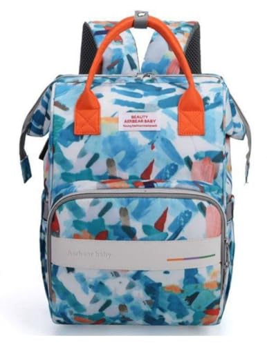 Generic - Beauty Aerbear Baby Fashion Backpack, Blue Watercolour Pattern, Orange Handles, Mesh Side Pockets