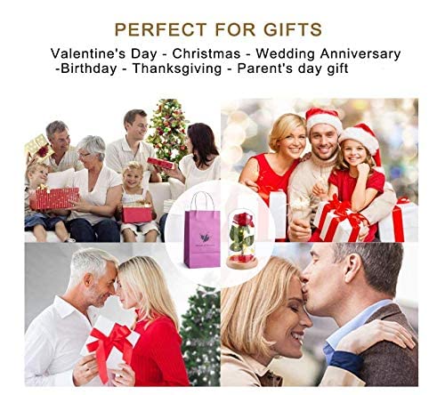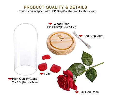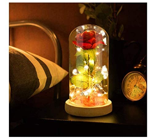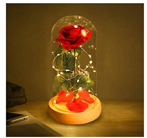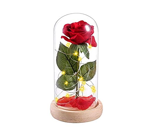 Other - ورود فيلم الجميلة والوحش وردة الاحلام حريرية حمراء مع ضوء ال اي دي واوراق متساقطة على قاعدة خشبية ذات قبة زجاجية مناسبة لحفلات الزفاف واحتفالات الذكرى السنوية وهدايا تعليمية للاطفال متعدد الألوان