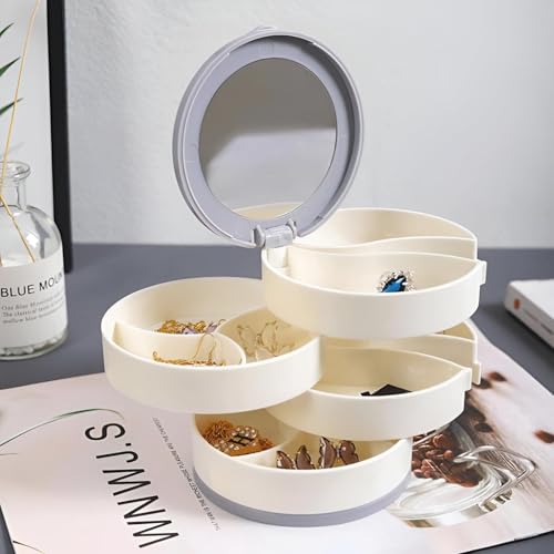 Generic - Beauty Organizer - Versatile multi-color jewelry case with smooth-turning design and mirrored lid, offering stylish and compact storage solution for daily accessories and cosmetics on vanity tops