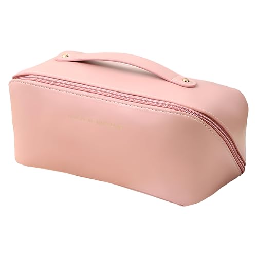 Generic - شنطة مكياج بسعة كبيرة للنساء، مصممة للسفر مع مساحات تخزين متعددة وتصميم أنيق مزدوج الطبقات