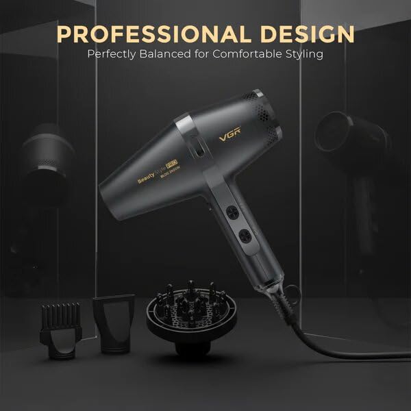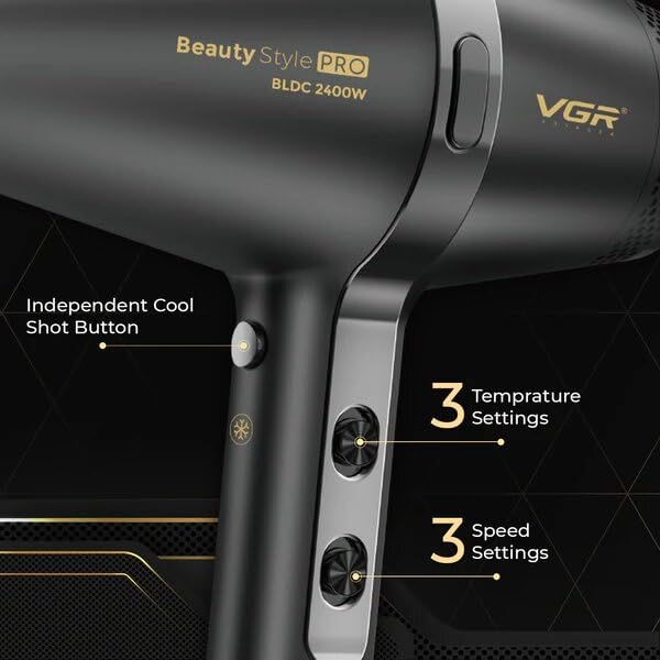 Generic - مجفف شعر في جي ار بروفيشنال بيوتي ستايل برو، قوة 2400 وات، اسود - V-409