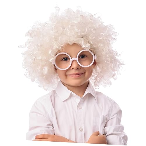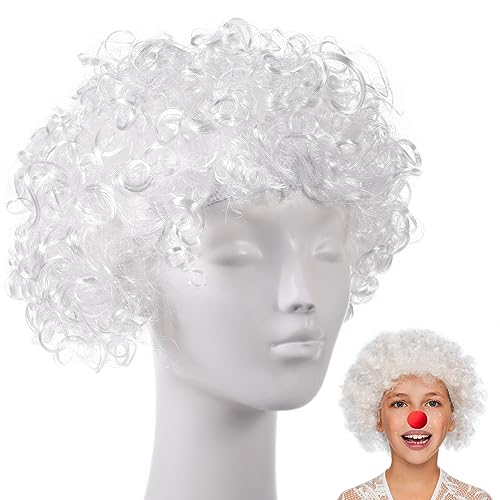 Beavorty - Beavorty 1 Piece Fluffy Afro Synthetic Clown Wig for Men Women Curly Cosplay Wig Barbarian Halloween Funny Fancy Wigs (White)