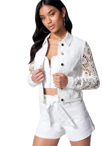 bebe - Bebe Crochet Sleeve Denim Jacket XS White Denim
