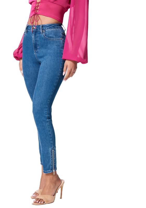 bebe - بيبي بنطلون جينز سكيني بخصر مرتفع وحاشية بسوستة مقاس 31 ازرق دينيم، للنساء