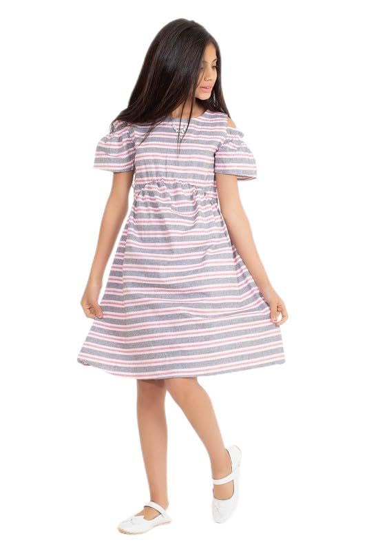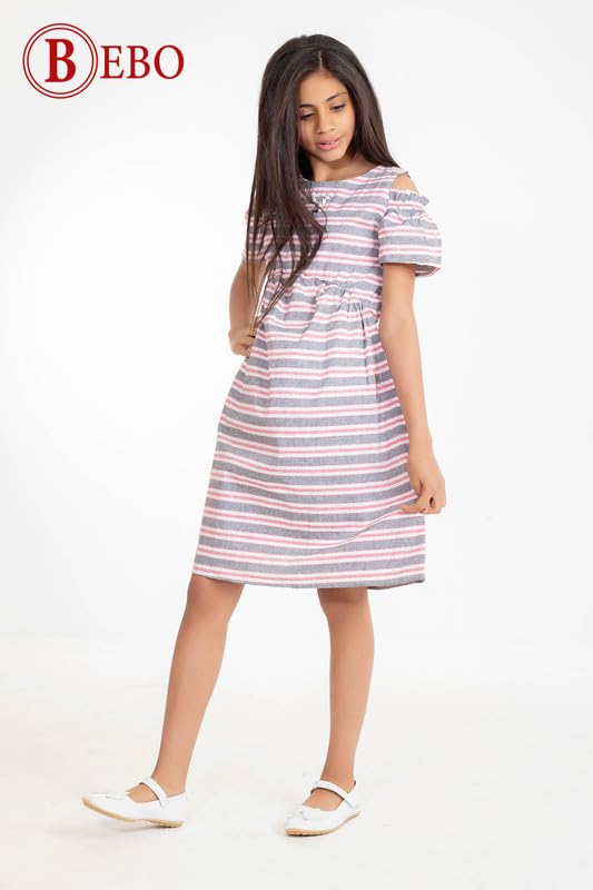 BEBO - BEBO بناتى فستان الكتان اوف شولدر مقلمه 6 سنه - كاشمير