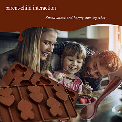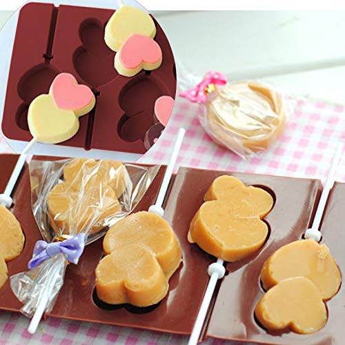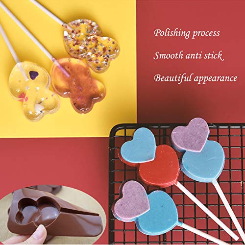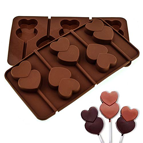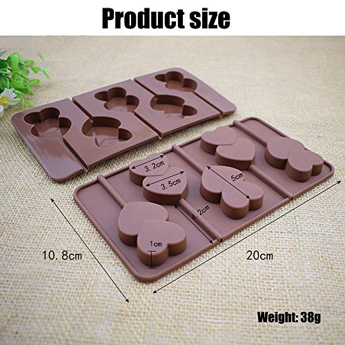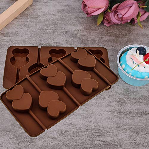 BECHOICEN - قالب من السيليكون على شكل قلب ومصاصات للكاكاو والشوكولاتة والكيك والجيلي والبودينج والصابون المصنوع يدويًا والحلويات بـ6 تجاويف من بيشويسين، من قطعتين