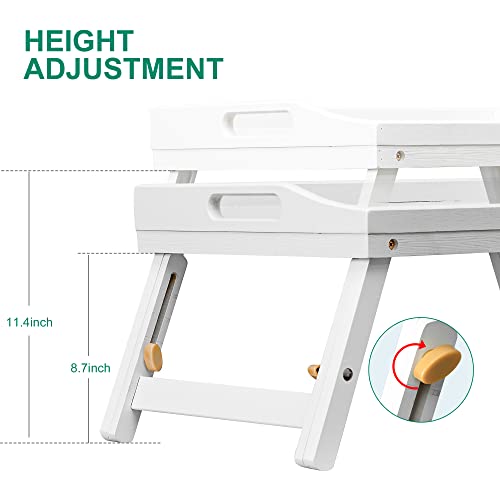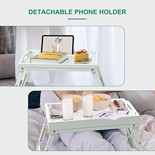 Mayyol - Bed Tray Table for Eating - Bamboo Breakfast Food Table with Phone Tablet Holder - Adjustable Height White Serving Tray with Folding Legs on Lap Sofa - Portable Laptop Snack Platter for Bedroom Picnic