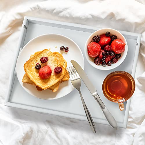 - [NATURAL AND SUSTAINABLE BAMBOO]: Breakfast tray is made of natural and sustainable bamboo, clean quickly with a damp cloth, more eco-friendly and reusable, Suitable for adults and kids, accompany you for a longer time