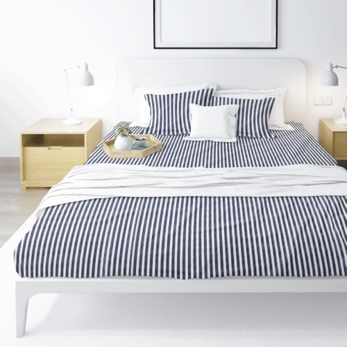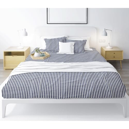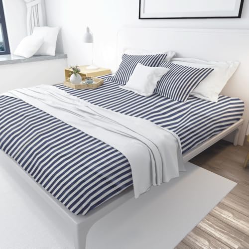 بد اند هوم BedNHome - طقم ملايات بحواف مطاطية مطبوع عليها خطوط من بيدن هوم، مقاس 200 سم × 200 سم، متعدد الألوان