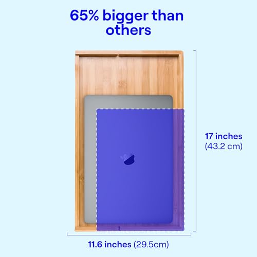 - VERSATILE DESIGN OPTIONS: The Plus size (19.25 x 11.5'') of the BedShelfie bedside shelf was designed specifically to hold a 16-inch MacBook Pro laptop. With 7 styles to choose from, including the Minimalist (13.75 x 9.5''), Original (13.75 x 9.5'') , Essential bed caddy with cup holder (17 x 11.6''), and Plus (19.25 x 11.5''), there's a BedShelfie to fit every bed frame with a rail.