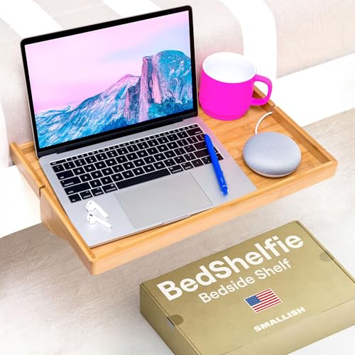 - ORIGINAL, TRIED & TRUE DESIGN: Launched from Kickstarter and designed in Los Angeles, the BedShelfie bedside shelf has been featured on top publications such as Apartment Therapy, BuzzFeed, and Real Simple. Our original bed shelfie bed shelf organizer table helps small space dwellers make the most out of their space, from those in tiny bedrooms to college students in need of a top bunk bedside table. It is the preferred choice for bed side organization and storage.