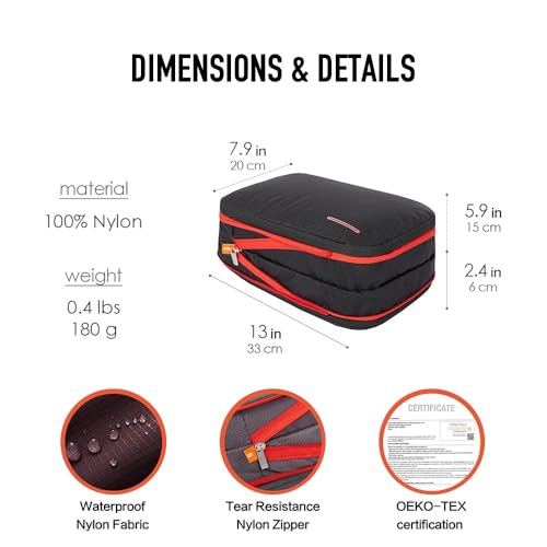 - PERFECT for TRAVEL - 26L(XLarge) for winter coats, sweaters, pants. 15L(Large) for shoes, jeans, t-shirts and shorts. 9L(Medium) forunderwear, bras, socks, and smaller/thinner garments of clothing. LITE Gear Pouch for cards, cash, tech data cable, cosmetics, toiletry etc.