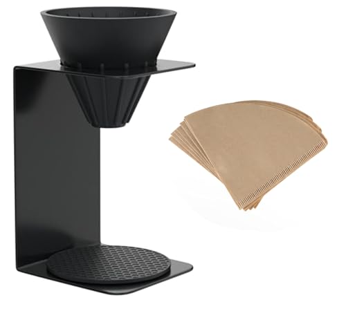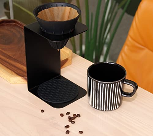 BeeCa - BeeCa Pour Over Coffee Maker Set, Dripper Cone and Black Metal Holder Stand, Hand Brewed 1-2 Cups, Stainless Steel Holder and Silicon Dripper Filter Coffee Server for Home or Office