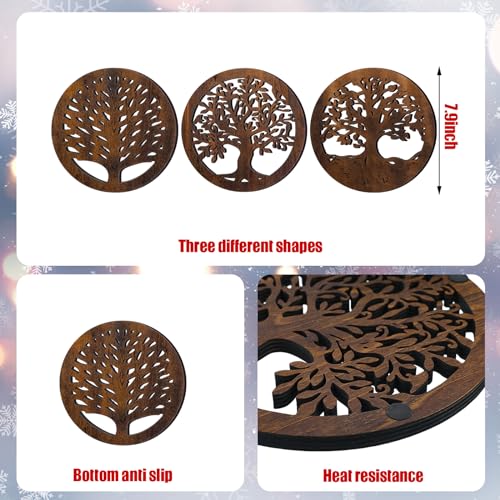 Beeveer - 3 Pcs Life Tree Wooden Trivets Round Plates Hot Dishes Trivet Heat Resistant Hot Pan Holder Winter 8 Inch(Brown)