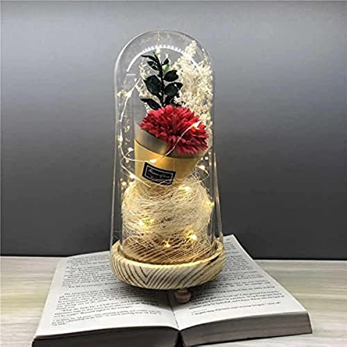 Generic - Befair Boukah, Rose Beauty LED Inside Glass Dome with Wood Base 24cm Diameter 4.5in Home Decor (Red)