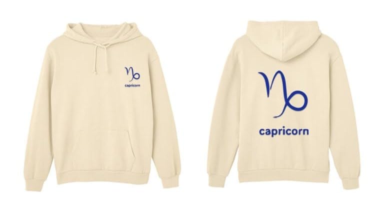 Generic - Beige cotton hoodie with capricorn zodiac blue Logo size (S)