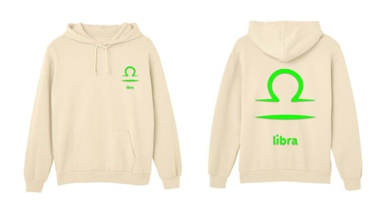 Generic - Beige cotton hoodie with libra zodiac lemon green Logo size (S)