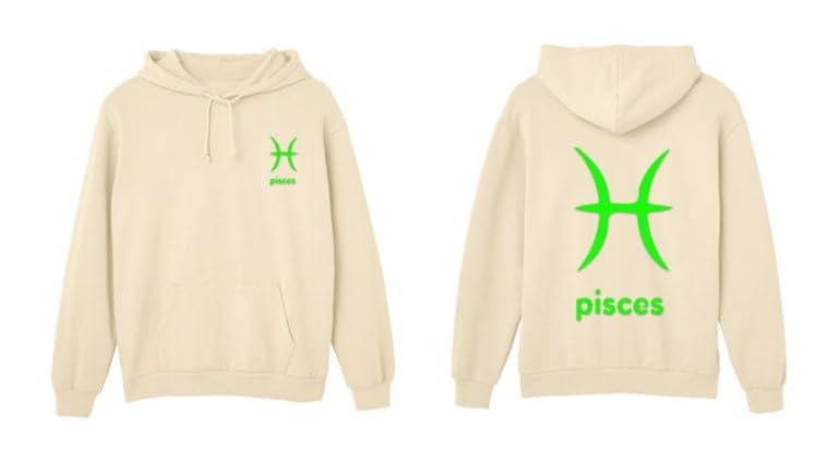 Generic - Beige cotton hoodie with pisces zodiac lemon green Logo size (L)