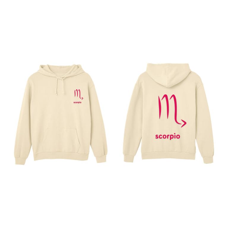 Generic - Beige cotton hoodie with scorpio zodiac red Logo size (M)