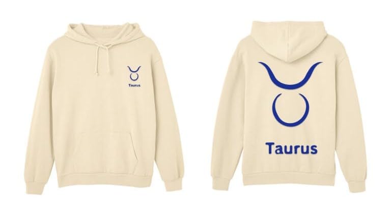 Generic - Beige cotton hoodie with taurus zodiac blue Logo size (S)