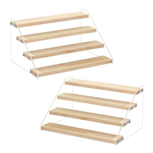 - المواصفات: المادة: اكريليك، خشب، اللون: خشب، شفاف، محتويات العبوة: 2 × رف عرض أكريليك خشبي مع 4 طبقات