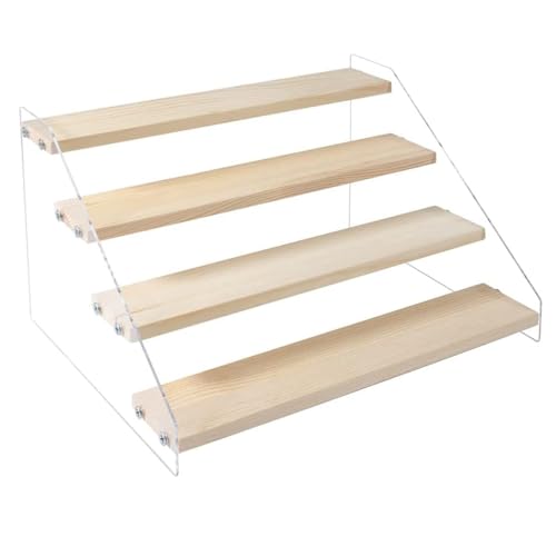 BeiHCain - حامل عرض خشبي من الاكريليك مكون من 4 طبقات مقاس 12 انش من بيهاكين، رف عرض من الاكريليك الشفاف متعدد الطبقات، رف عرض سلم سلم للكب كيك والعطور والمجسمات القابلة للتجميع