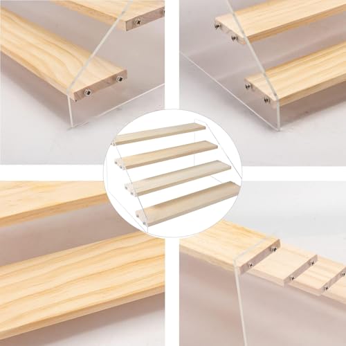 - المواد: رف العرض الخشبي المصنوع من الأكريليك المكون من 4 طبقات مصنوع من خشب عالي الجودة ومادة أكريليك شفافة، مع حافة أكريليك ناعمة وقدرة تحمل جيدة، قوي وخفيف الوزن ومتين، الإطار قوي وثابت وصلب، مما يمنع التذبذب وسيخدمك لفترة طويلة