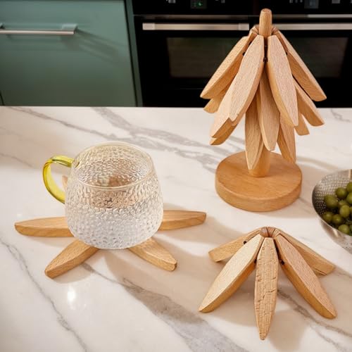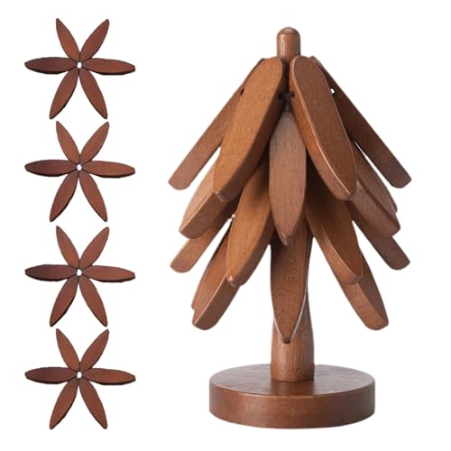 BEIYUANYA - Wooden Trivets for Hot Dishes,Tree Shape Trivet Set,Trivets for Hot Dishes,4 Wooden Trivets+1 Stand stored,Tree Insulated Table Mat