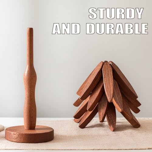 - 【Design Brilliance】Each wooden heat-resistant serving board has six small wooden pieces, simply remove one from the stand and place it directly on the table surface, without needing to flatten it in advance. Simply lift the utensil from the top and slowly set it down, due to gravity, it will automatically unfold and perform its function, making each use a fun experience
