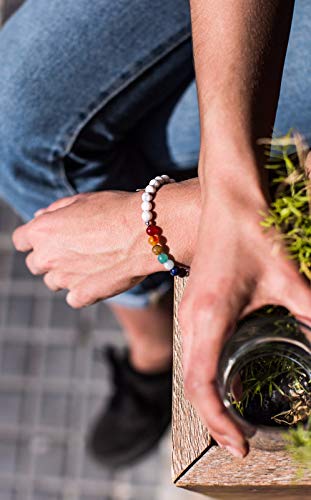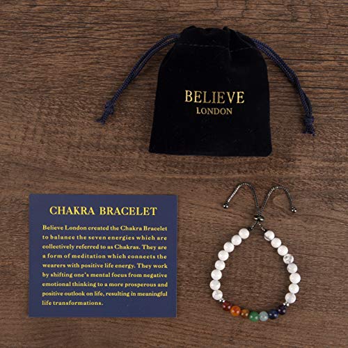 Believe London - Believe London® Gemstone Bracelet Chakra Bracelet Anxiety Crystal Natural Stone Men Women Stress Relief Reiki Yoga Diffuser Semi Precious, 8 inches, Stone, howlite