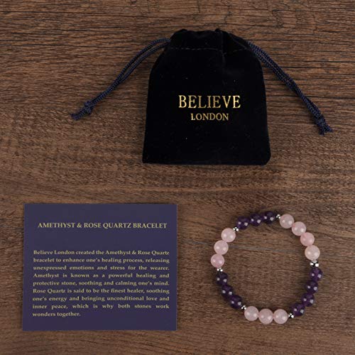 Believe London - سوار احجار كريمة لممارسة الشاكرا وعلاج القلق كريستال واحجار طبيعية للرجال والنساء موزع طاقة الريكي لليوجا وتقليل الاجهاد شبه من بيليف لندن® حجر الجمشت الوردي الكوارتز
