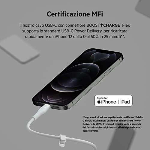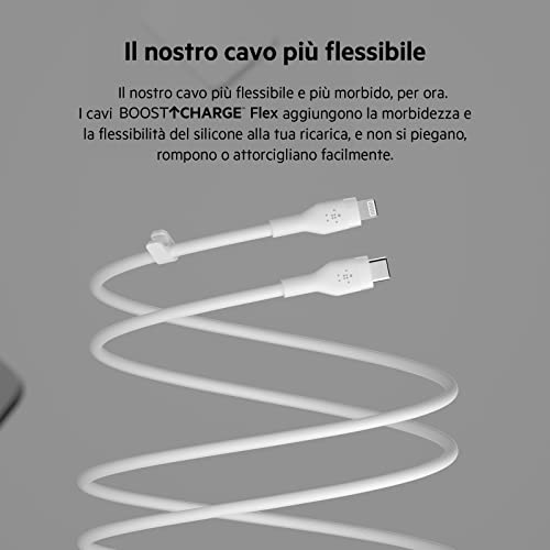 Belkin - Belkin Boostcharge Flex Silicone Usb Type C To Lightning Cable (3M/10Ft), Mfi Certified 20W Fast Charging Pd Power Delivery For Iphone 13, 12, 11, Pro, Max, Mini, Se, Ipad And More - White