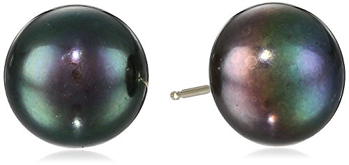 Bella Pearl - اقراط مرصعة بلؤلؤ المياه العذبة مقاس 9 ملم، لؤلؤ, بيرل، أسود، للنساء
