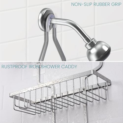 - EASY/QUICK INSTALLATION: You can quickly install this shower caddy with no extra tools needed. The unit can hang over the top of your shower head and be held in place with the adhesive strips. Assembling the basket rack is also quick and instructions are included.