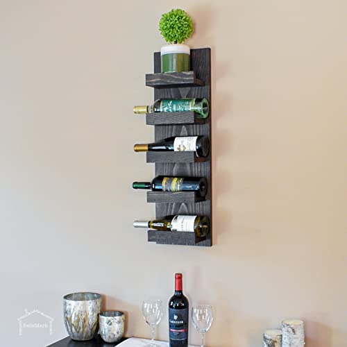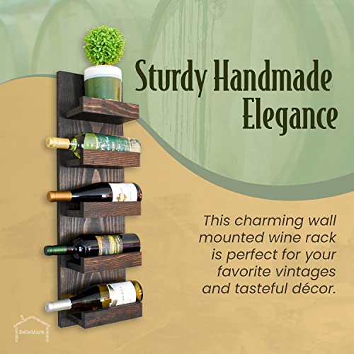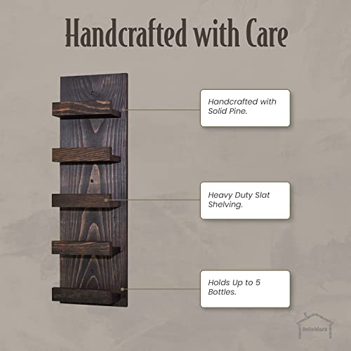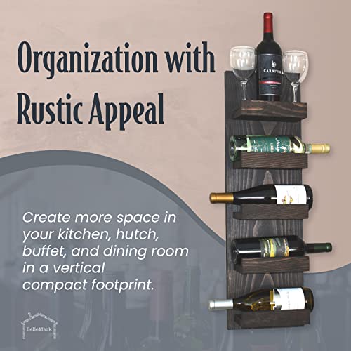 BELLEMARK - Wall Mounted Wine Racks, Hand Made in The USA, Wine Rack Wall Mounted 5 Bottle Wall Wine Racks for Wine Bottles- Hanging Wine Rack for Wine Bottles and Glasses- Wall Mount Wine Rack