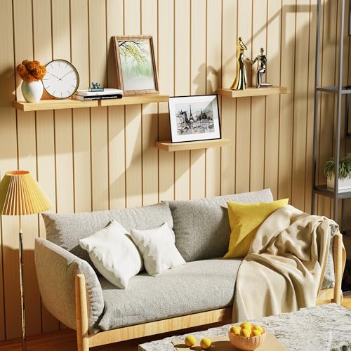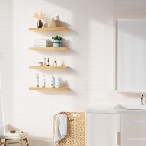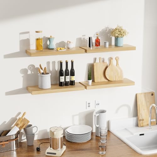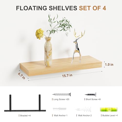 Bellsal - Bellsal Floating Shelves for Wall, Maple Wood Wall Shelf Set of 4, 16" Wall Mounted Floating Shelf for Kitchen, Living Room, Bedroom, Bathroom Storage, Book Shelf for Wall Home Decor, Frame Display
