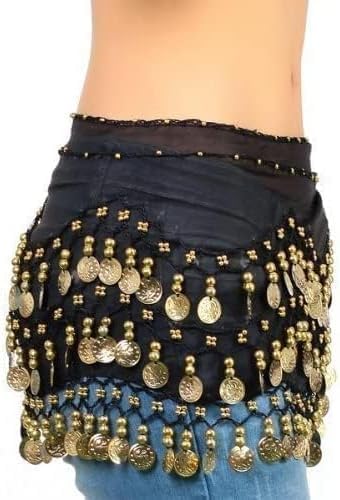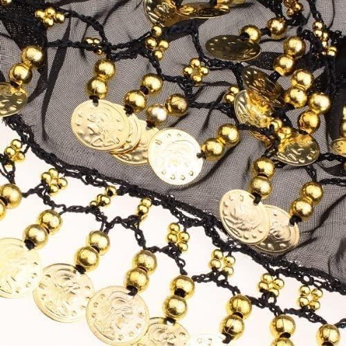 Generic - بدلة رقص شرقي للنساء، مصنوعة من الشيفون، باللون الأسود والذهبي، مقاس موحد، بتصميم زي الرقص