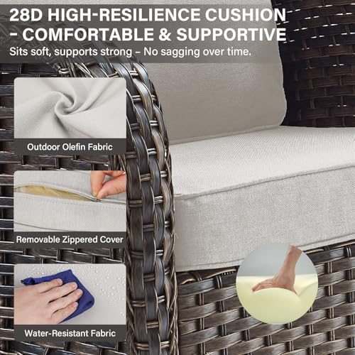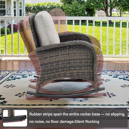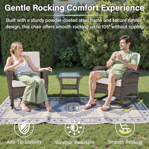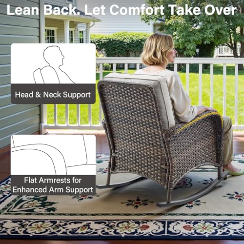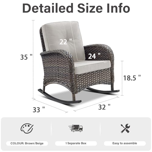 Belord - كرسي هزاز للفناء من بيلورد، قطعة واحدة من كرسي هزاز خارجي مع وسائد للشرفة وسطح الشرفة، بني/بيج