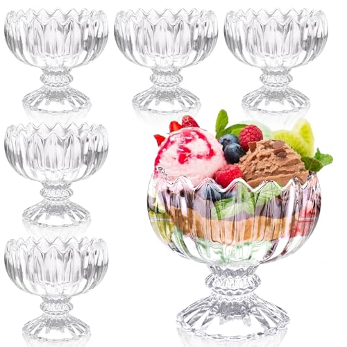 Beloss - 6Pcs Glass Dessert Cups, 6.8Oz Footed Ice Cream Bowls, Glass Dessert Bowl Clear Small Tulip Dessert Cup for Cocktail, Sundae, Trifle, Salad
