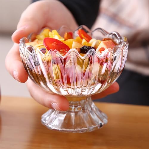 - Material: Clear glass dessert cups made of high-quality glass, food-grade, safe and non-toxic, sturdy and durable, reusable, easy to clean and dishwasher safe.The base of this footed ice cream bowl is thick, weighted and sturdy to help provide stability and prevent tipping