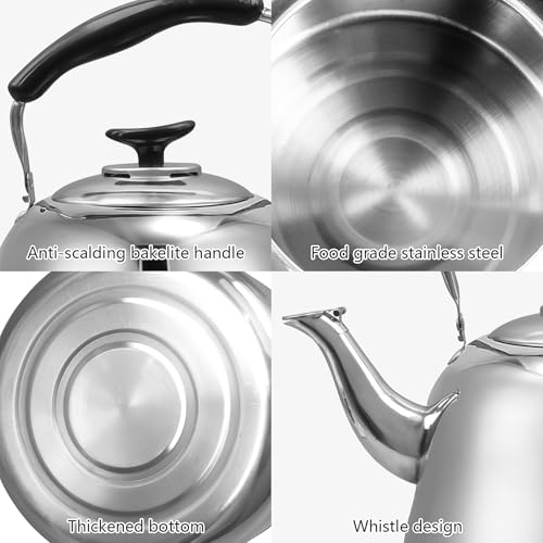 Beloss - غلاية شاي من الفولاذ المقاوم للصدأ مع صفارة للبوتوجاز، إبريق شاي بمقبض يوضع على البوتوجاز، مناسب لغلي الماء والقهوة واللبن، ومناسبة للتخييم من بيلوس، سعة 5 لتر